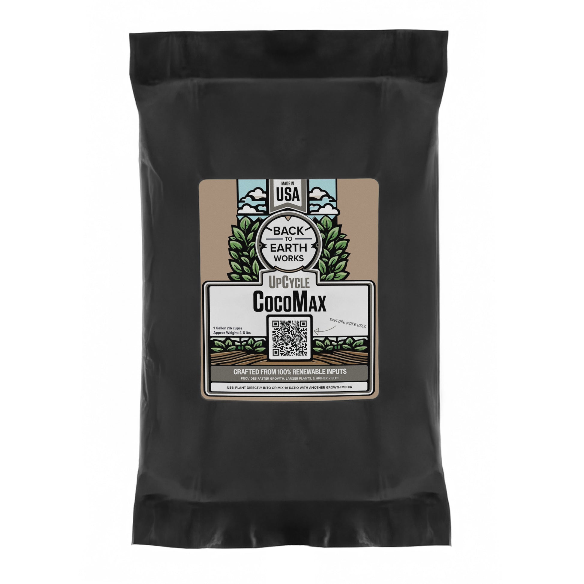 UpCycle CocoMax is an all-natural, microbially enriched grow media made entirely from renewable inputs. Combining coco coir, biochar, mycorrhizal fungi, kelp extract, worm castings, and fish hydrolysate, it creates a nutrient-dense environment for plants to thrive.